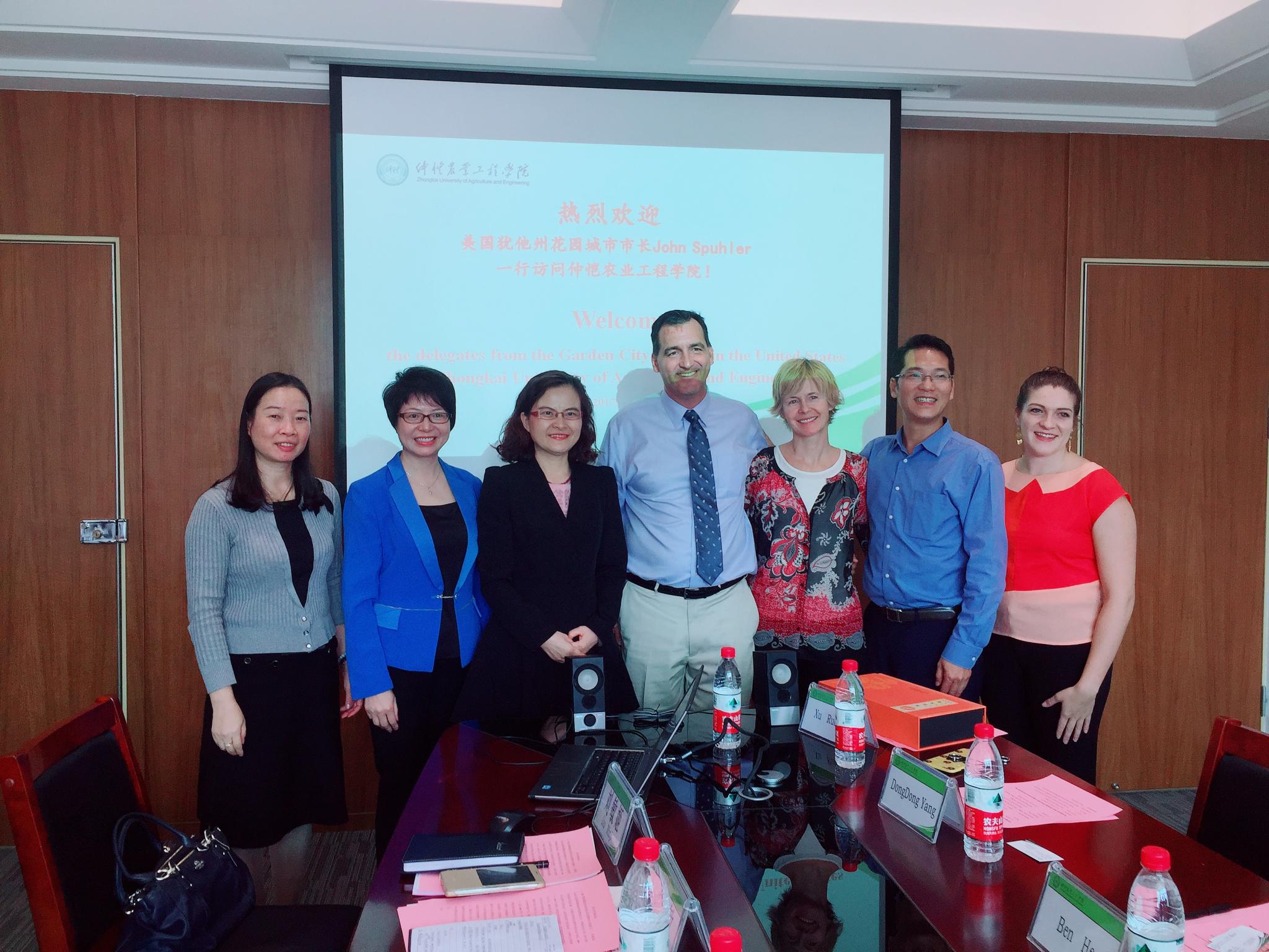 10月31日,美国犹他州花园市市长John Spuhler在EEG美国精英院校联盟发起人之一Ben He的陪同下一行7人到我校访问。骆少明校长亲切接见了来访客人。李小琴副校长和外事处、国际交流培训中心负责人参加了交流座谈。校领导对John Spuhler市长的到访表示热烈的欢迎,介绍了我校的办学历史和国际交流项目的开展情况。John Spuhler对我校光荣而悠久的历史表示赞叹,并介绍了当地学生的中文学习情况,表示非常乐意与中国学校进行教育合作,彼此间有广阔的合作空间。与会人员就今后一系列交流项目进行了深入讨论,达成了共识。