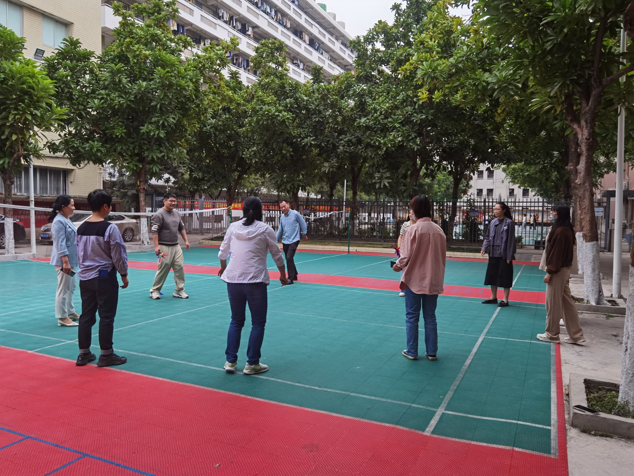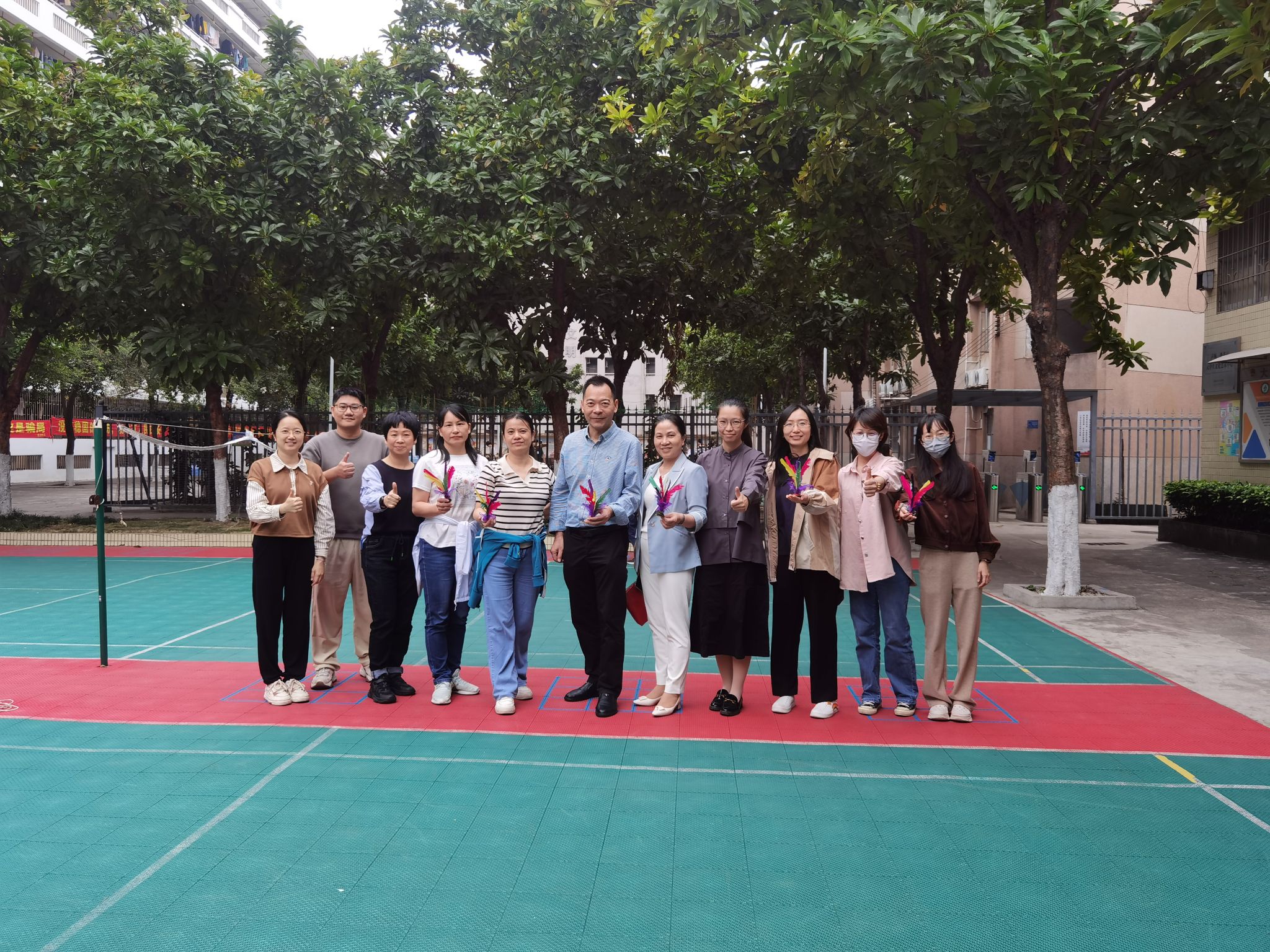 活动中,大家兴致高昂,积极参与到踢毽子活动中,欢笑声不断响起。大家各显身手,小小的毽子在每个人的脚下变得十分轻巧,彩色的羽毛毽子在空中上下飞舞,犹如一只只欢快的蝴蝶。
