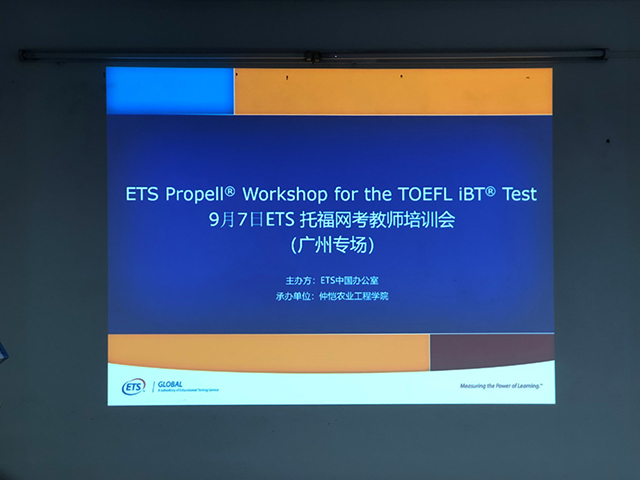 9月7日,由ETS美国教育考试服务中心中国办公室主办,我校国际交流培训中心承办的ETS官方托福网考教师培训暨研讨会(广州专场)在海珠校区30栋三楼举行。来自广东地区的高校及高中英语教师代表参加了会议。本次会议旨在增强我校托福网考考点的国际化水平与教学理念,传达第一手的托福考试资讯,为业界人士提供深入交流的平台。本次会议40余个参会名额在会前两个月全被预定一空。 此次会议由同济大学教授,留英博士、博导,美国ETS中国唯一官方导师李梅教授主持。李教授拥有近30年英语教育、英语测评与研究工作的经验,常年担任ETS中国托福奖学金项目的评委工作。在此次培训会上,李教授为教师们在英语教学方面提供教学技巧和授课策略的指导,详细解答各位教师对托福网考中各单项的评分标准的疑惑,并针对真实考生的回答作为样本请现场的教师们一起参与评分。会上,我校托福培训教师和其它各学校的教师代表积极参与讨论,热烈分享交流各自的授课心得。会后,ETS中国总部为参加本次培训会的教师授予了ETS托福网考教师培训会参会证书。最后,主办方及参会教师们对我校国际交流培训中心的会议承办团队认真细致的组织工作和团队协作精神给予了高度赞扬。