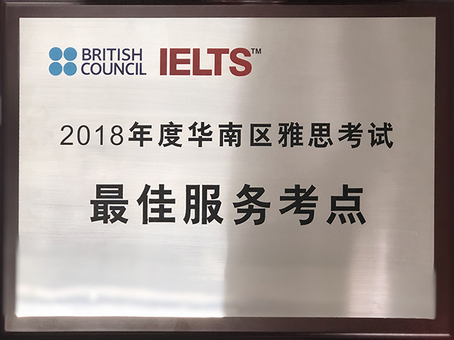 2018年12月,广州雅思考试中心在雅思华南区年会上荣获英国文化教育协会(British Council)颁发“2018年度华南区雅思考试最佳服务考点”称号。