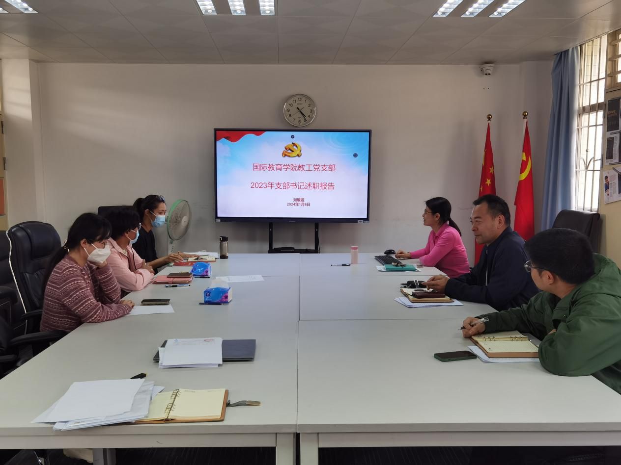 昌灯圣充分肯定了教工党支部2023年抓基层党建取得成绩。他表示,过去的一年,党支部认真学习宣传贯彻党的二十大精神,坚持不懈用习近平新时代中国特色社会主义思想铸魂育人,扎实开展主题教育,按照学校党委和学院总支的工作部署和要求,围绕英国威廉集团工作,充分发挥支部战斗堡垒作用和党员先锋模范作用,为学院的考试服务、培训业务及国际班事务管理等工作作出了积极贡献。并要求今后要积极加强党建工作与业务相融合,创建党建工作品牌。